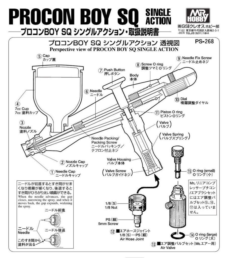 Ersatzteil für MR. HOBBY Airbrush PS268. Gummi-Dichtungsring, der das Entweichen von Luft und Farbe verhindert. Das Bauteil ist nicht kompatibel mit anderen Airbrushes.