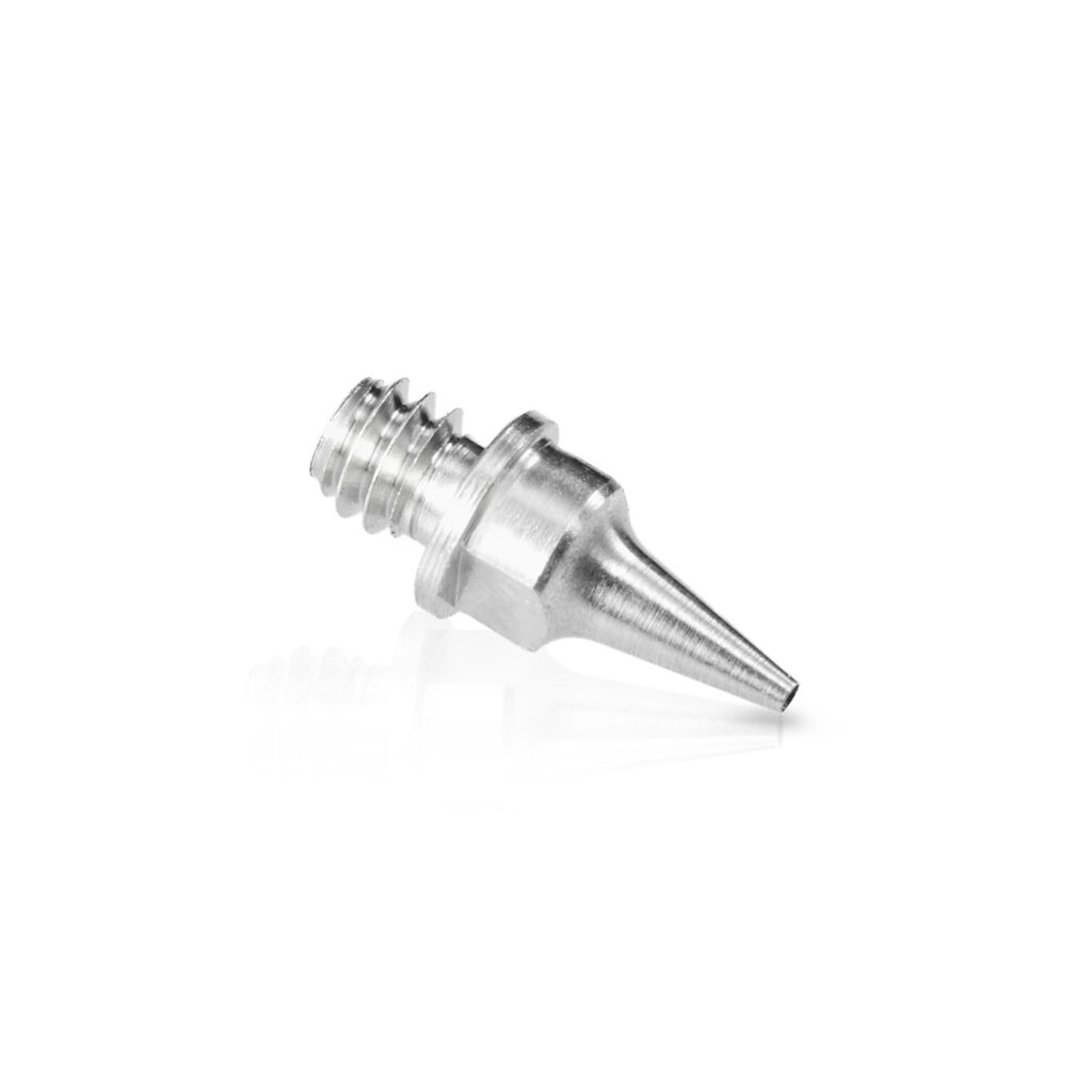 Ersatzteil für MR. HOBBY Airbrush PS770. Eine 0,18-mm-Metalldüse, die das Sprühen und Zerstäuben der Farbe ermöglicht. Die Komponente ist kompatibel mit PS771.