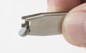 Die spezielle Einkerbung an der Spitze hält das Ziel fest. Sie hält kleine Teile fest, die bei Verwendung einer normalen Pinzette abrutschen würden. Es ist ein praktisches Werkzeug, mit dem du das Ziel mit einer Feile bearbeiten kannst, während du es mit der Pinzette hältst.