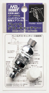 When the humidity is high, water droplets may form in the air hose even when using a regulator. In such cases, connecting the drain & dust catcher to the airbrush will almost completely block the water droplets. It also serves as a grip to make it easier to hold the airbrush.#