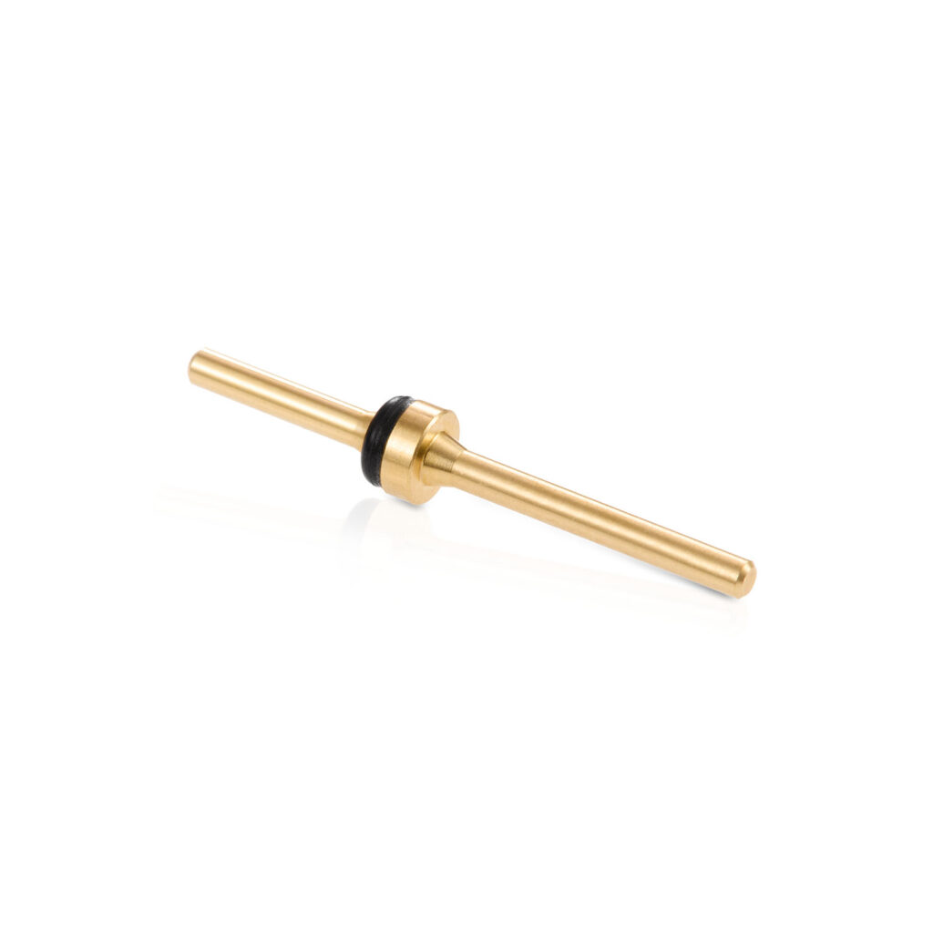 Spare part for MR. HOBBY Airbrush PS266. Brass air valve with rubber sealing ring to regulate the air flow. The component is compatible with PS267.