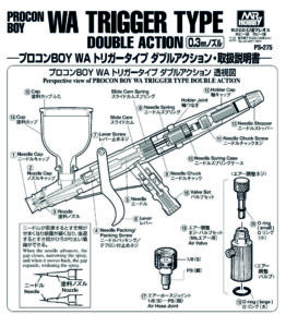 Spare part for MR. HOBBY Airbrush PS275. Needle seal and sealing screw made of brass and plastic to prevent air and paint from escaping. The component is not compatible with other Airbrushes.