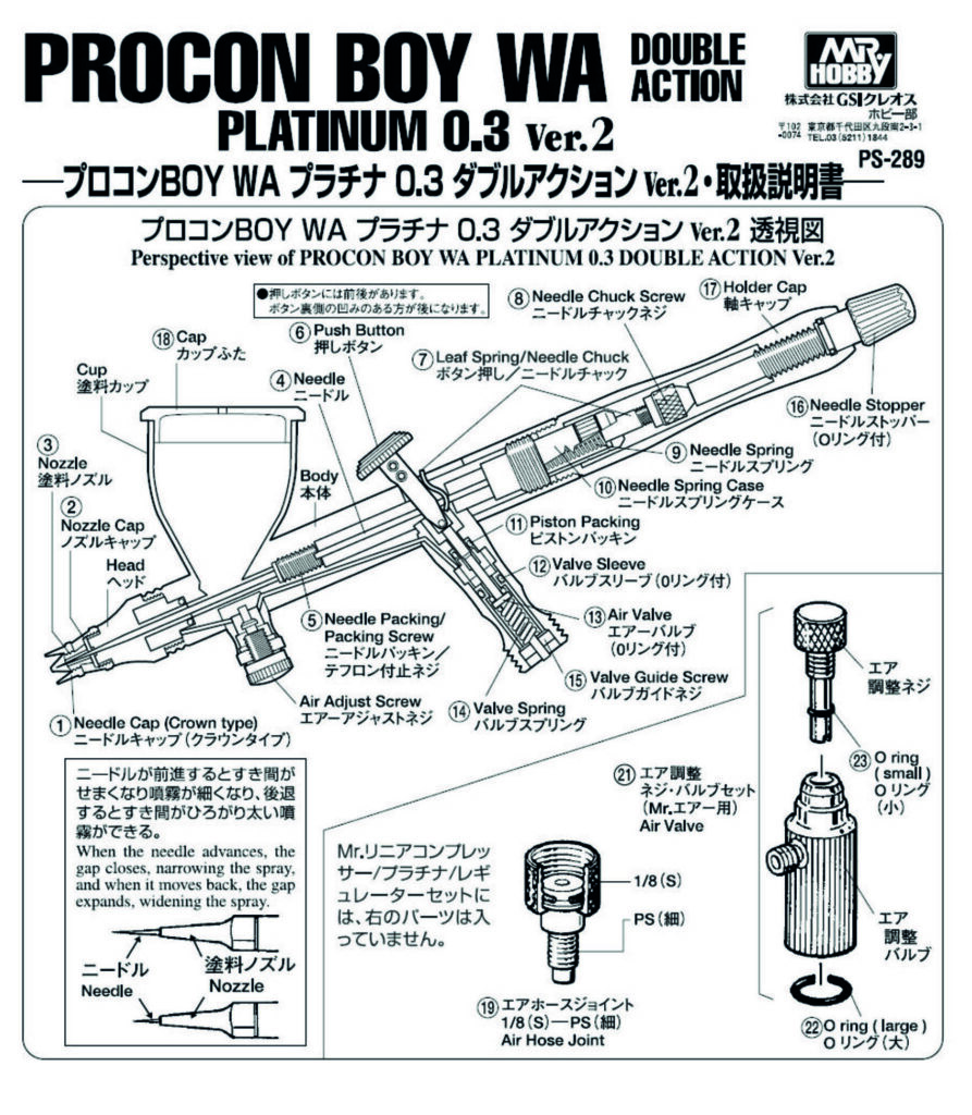 Spare part for MR. HOBBY Airbrush PS289. Brass trigger that activates the air and paint flow. The component is compatible with PS269, PS270.
