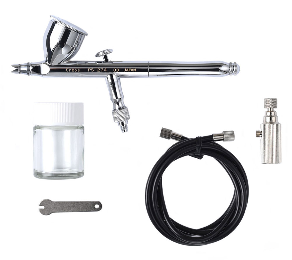 Standard 0.3mm diameter airbrush. Easy to use model for everything from thick overall paint to camouflage paint. The slanted air valve line makes it feel natural and easy to hold.