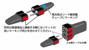The VAL-04 series is a lineup of extension cables. Please use it in combination with LEDs and battery boxes (VAL-03 series) according to the work to be produced.